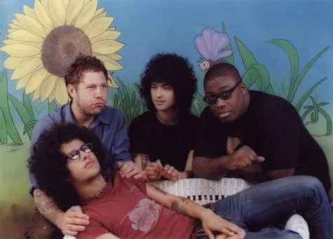 DE FACTO (left to right to front): Jeremy Michael Ward, Cedric Bixler-Zavala, Ikey Owens, Omar Rodriguez-Lopez.