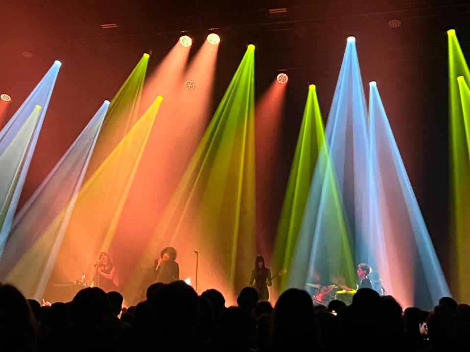 There was a humility to The Mars Volta’s set that began with the stage position of Omar, playing comfortably in the back-center of the stage, opposite bassist Eva Gardner. We’re talking about an Omar that released a 57-LP box set of solo recordings in 2023 still available for a mere $1500 USD — there is no end to his capacity for centralizing himself as Art. Yet Omar was not front stage-right, but tucked away in the literal shadows towards the rear of the stage, with his brother, percussionist and multi-instrumentalist Marcel, taking more of the stage real estate. Singer Teri Gender Bender — a founding member of Le Butcherettes who also collaborates with Omar in several bands, including Bosnian Rainbows — provided backing vocals with Cedric, the two harmonizing much of the night’s set.